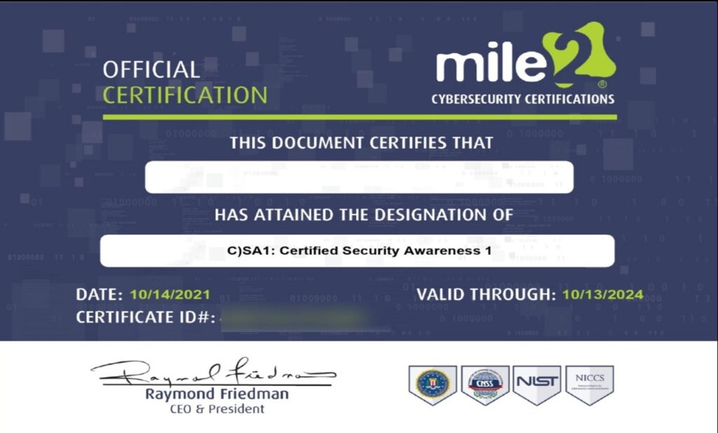 Security Awareness training through Mile2’s C)SA1 and C)SA2 certifications, delivered by Securityskool, is tailored for corporate teams to build a strong security-conscious culture across all levels of the organization.